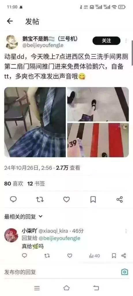 推特昵称为“鹅宝不是宝”的网友,在广州动漫星城的男厕内组织了一场多人运动。起初,我以为这只是开玩笑,没料到竟然是真实发生的。甚至男厕门口还开始排起了队伍。难道你们真的如此追求刺激吗?